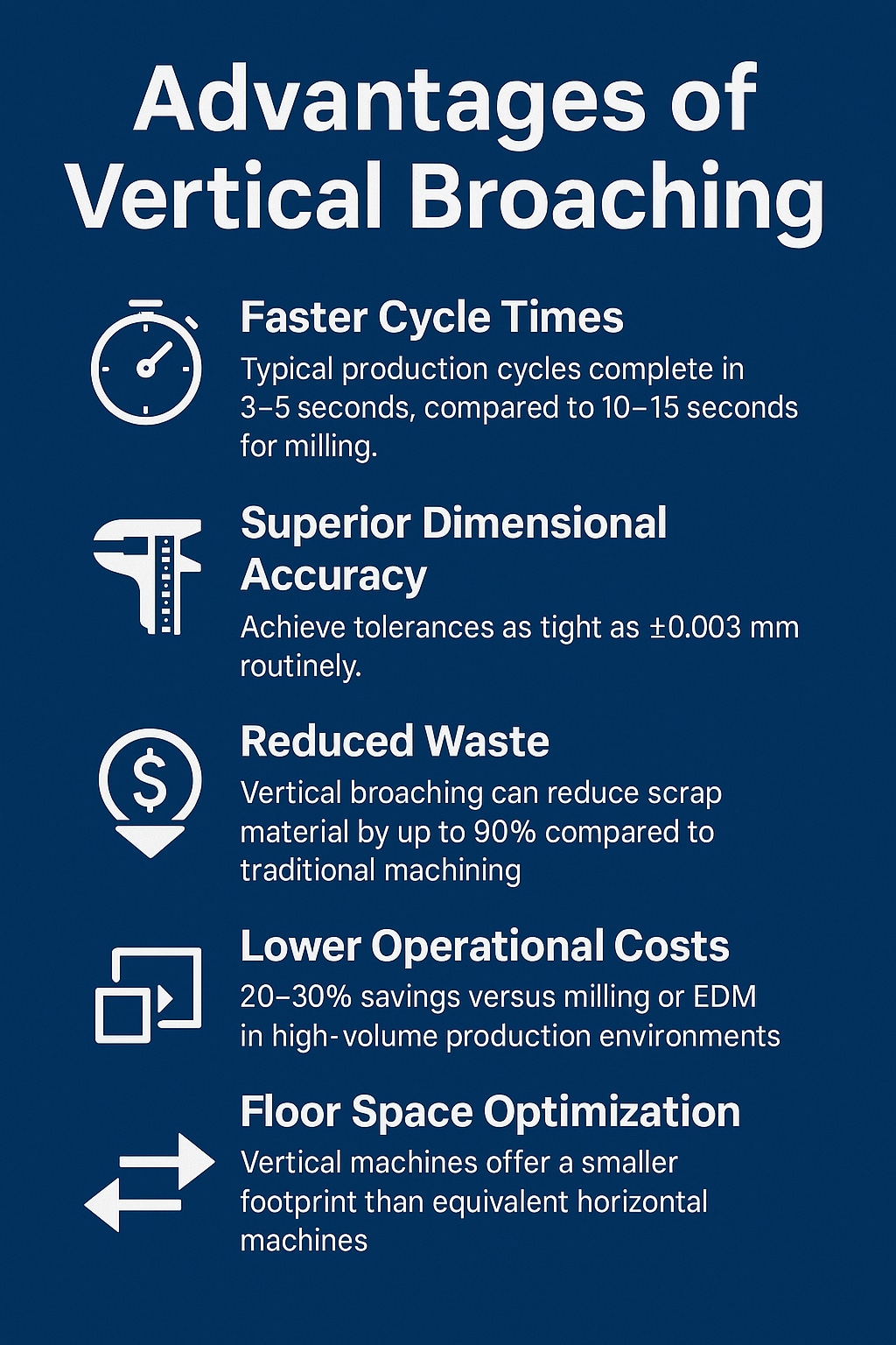 “Implementing vertical broaching reduced our cycle times by over 25%, extended tool life by 30%, and gave us a measurable edge over competitors.”